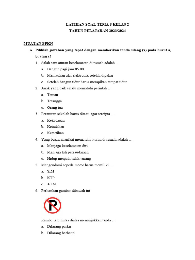 • Contoh Soal 2.2: Aturan di Sekolah (Pendidikan Kewarganegaraan)